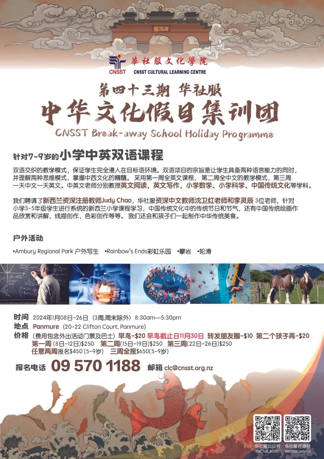 我们聘请了新西兰资深注册教师Judy Chao,华社服资深中文教师沈卫红老师和李灵辰 3位老师,针对小学3-5年级学生进行系统的新西兰小学课程学习,中国传统文化中的传统节日和节气,还有中国传统绘画作品欣赏和讲解,线描创作,色彩创作等等。我们还会和孩子们一起制作中华传统美食。