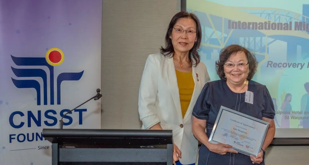 Certificate of Appreciation presented by Wilson Young (右一), CNSST Board Deputy Chair, NZ
