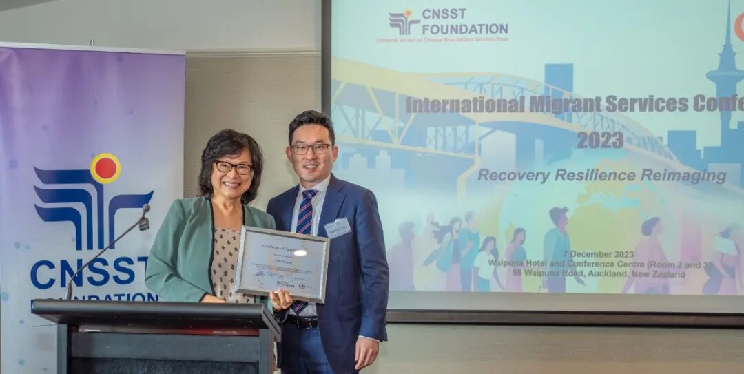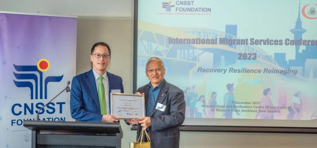 Certificate of Appreciation presented by Gordon Tian (右一), CNSST Board Secretary, NZ