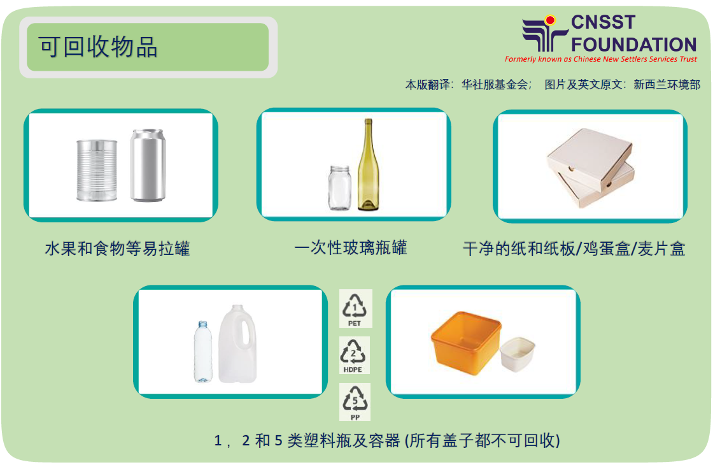 备注: 以上资料由新西兰华社服基金会整理和翻译,资料和图片来源:新西兰环境部,奥克兰市政府Waste Solutions, 新西兰华人环保教育信托基金。