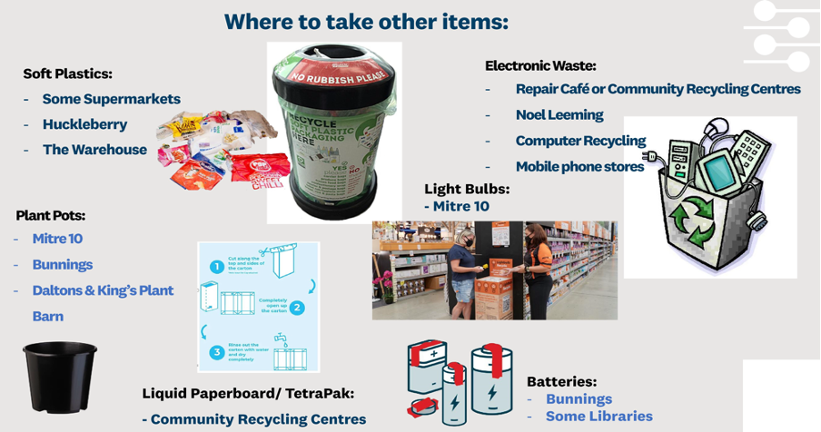 软塑料垃圾:The Warehouse; 部分超市;Huckleberry