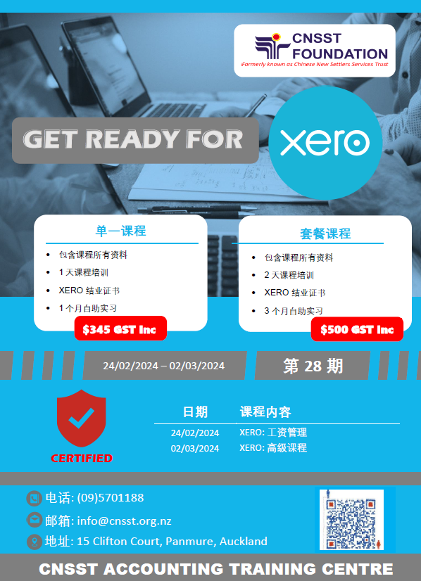 华社服财务培训中心诚邀您参与网络学习及自我增值。MYOB/XERO会计培训课开课啦,帮助您更进一步提高自己的就业技能,干货满满不容错过! ingFang SC", "Hiragino Sans GB", "Microsoft YaHei UI", "Microsoft YaHei", Arial, sans-serif; text-align: left;">欢迎报名咨询: 09-2189071ingFang SC", "Hiragino Sans GB", "Microsoft YaHei UI", "Microsoft YaHei", Arial, sans-serif; text-align: left;">Email: info@cnsst.org.nz