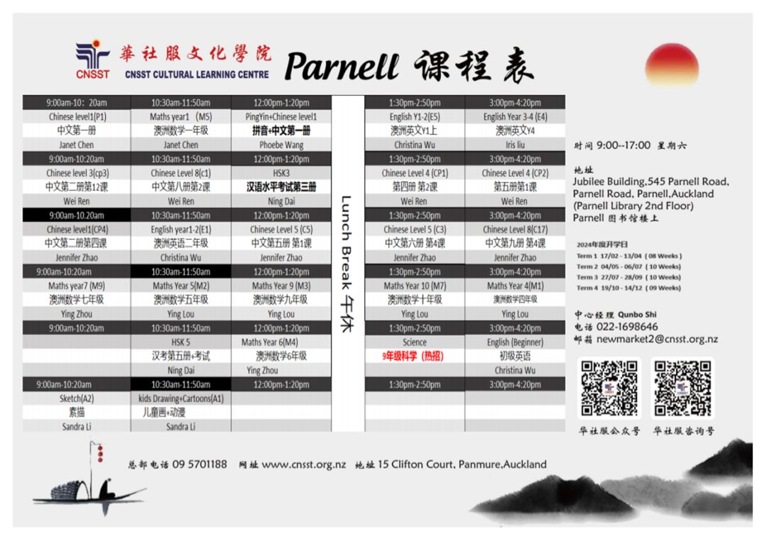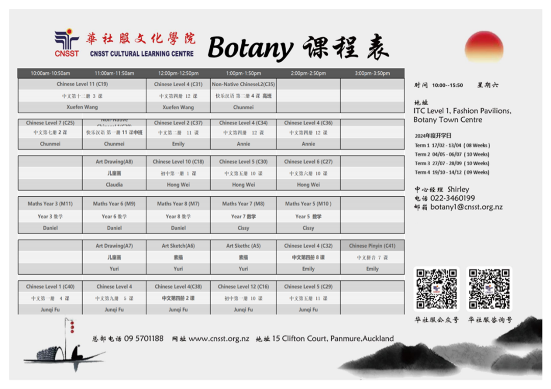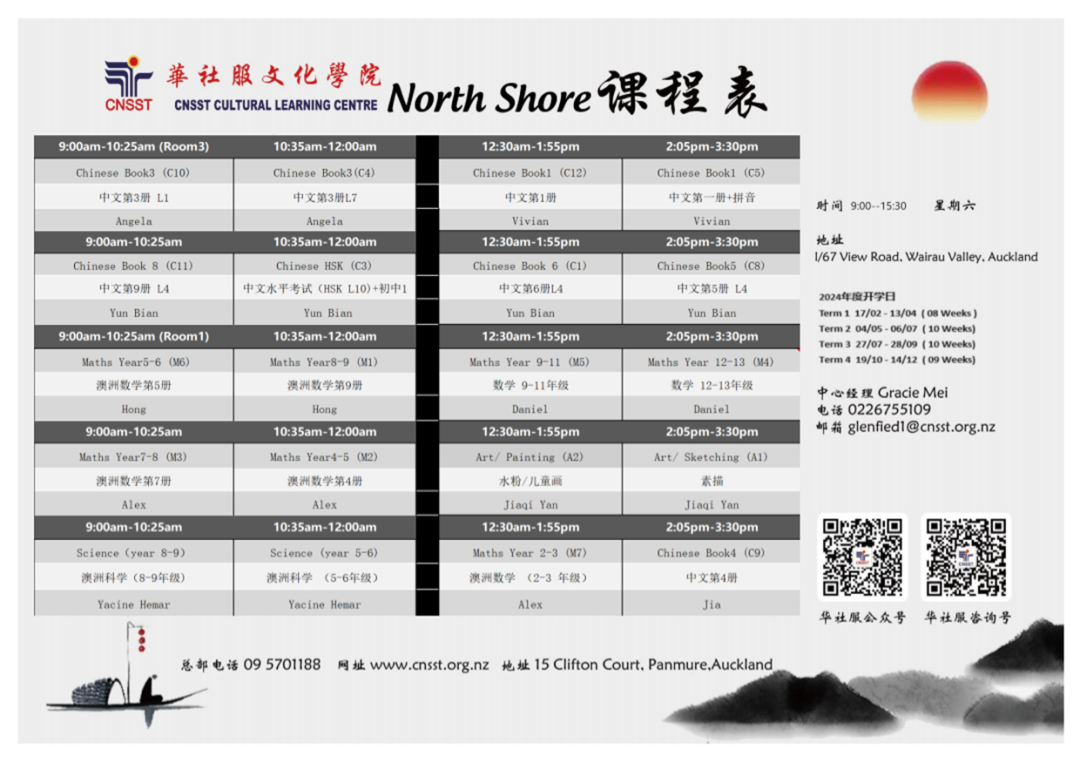 25年来长期致力于华文教育以及中华文化传播,通过开展各类社区教育活动以传承和弘扬中华文化。分院分布奥克兰各区,方便学员们就近上学。华社服文化学院用心教学,拥有专业敬业的师资和多元化课程及服务!
