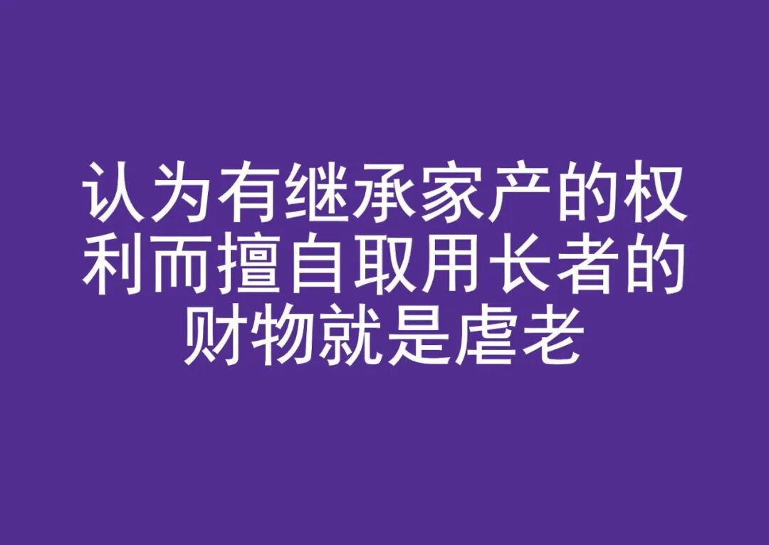 经济剥削,或物质虐待包括:(a)非法使用或不适当地使用或侵吞老年人的财产和/或资金;(b)强迫老年人更改遗嘱及其他法律文件;(c)剥夺老年人使用其控制个人资金的权利;以及(d)经济骗局以及诈骗性计划。