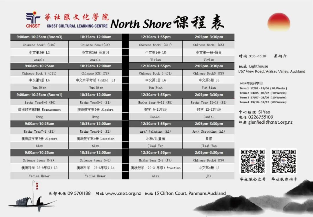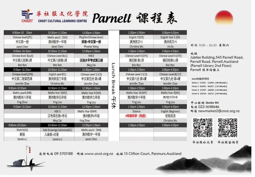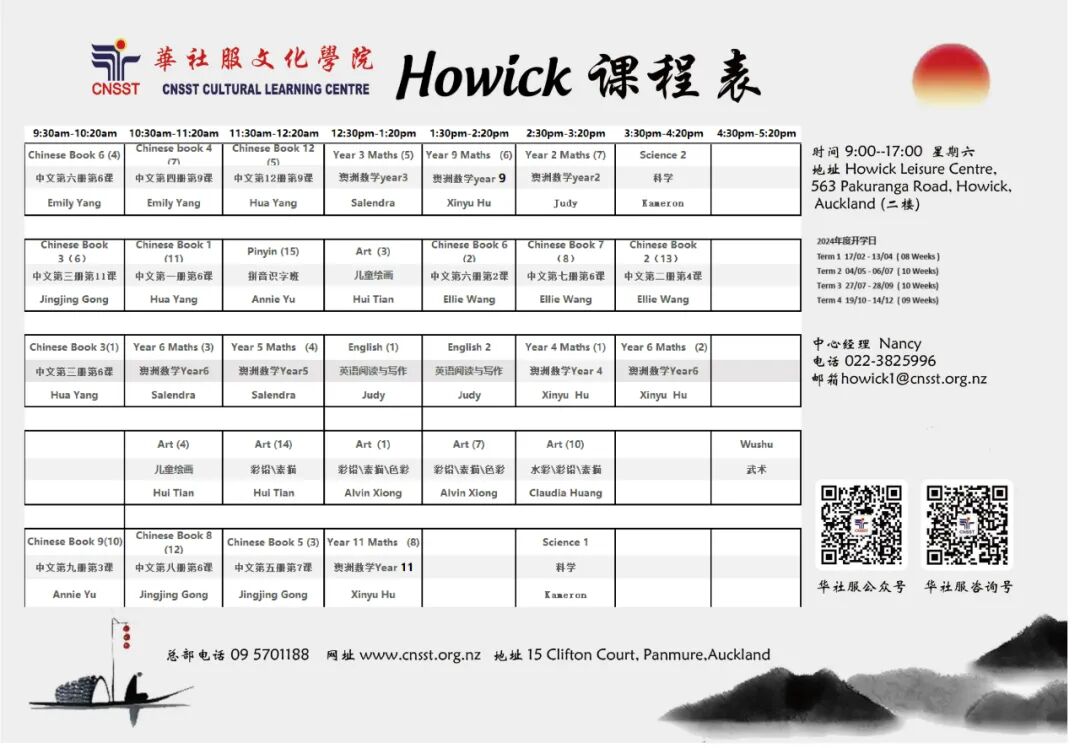 25年来长期致力于华文教育以及中华文化传播,通过开展各类社区教育活动以传承和弘扬中华文化。分院分布奥克兰各区,方便学员们就近上学。华社服文化学院用心教学,拥有专业敬业的师资和多元化课程及服务!