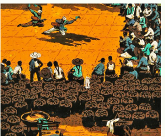 版画,造型艺术之一。作者运用刀和笔等工具,在不同材料的版面上进行刻画:可直接印出多份原作,故又称“复数艺术”。早期大多用于复制图画,绘、刻、印三者分工,称为“复制版画”;后发展成为独立的艺术形式,由作者自画自刻自印,称为“创作版画”。