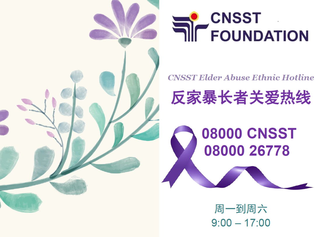 反家暴长者关爱热线08000CNSST/08000 26778正式启动!华社服基金会注册社工为您提供专业免费保密的电话咨询。