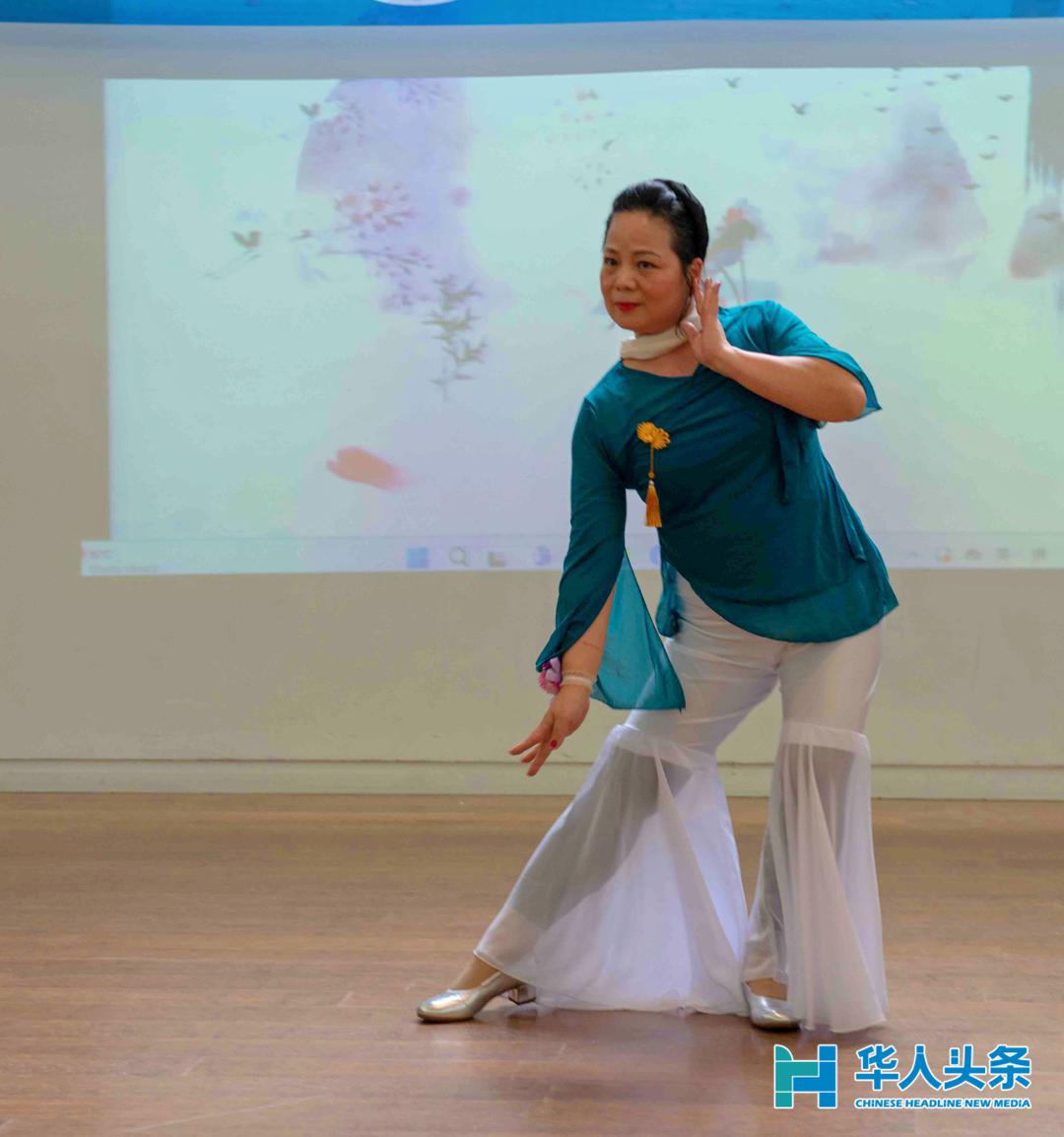 清清女士表演《月满西楼》:清清女士的舞蹈描绘了中秋的月夜,舞曲的悠扬旋律和深情演绎增添了节日的气氛。
