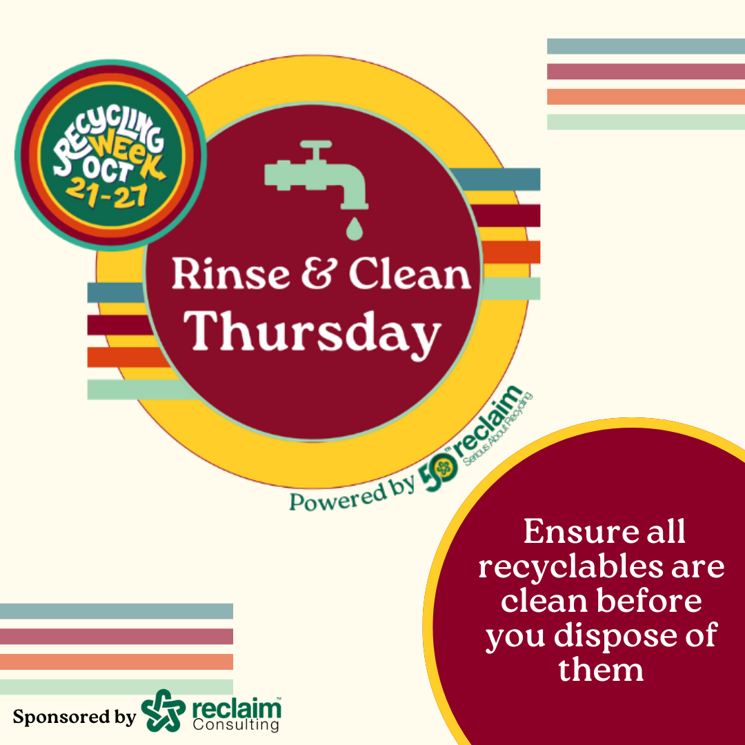 Rinse & Clean Thursday combats contamination through ensuring that recyclable materials are sufficiently clean and disposed in the correct waste stream. Cleaning and separating are essential for successful recycling. #RecyclingWeek24#SayNoToWaste#WasteMinimisation#RinseAndCleanThursday