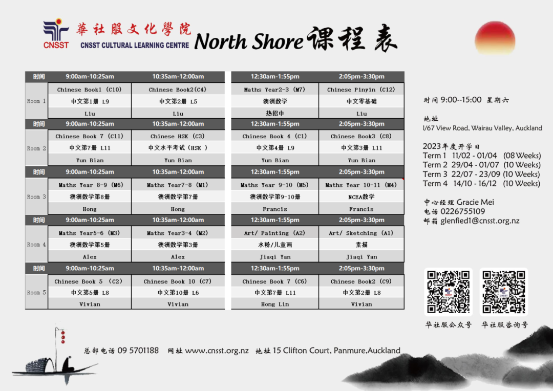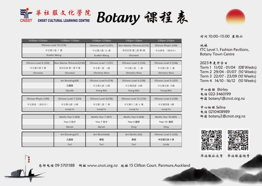 25年来长期致力于华文教育以及中华文化传播,通过开展各类社区教育活动以传承和弘扬中华文化。分院分布奥克兰各区,方便学员们就近上学。华社服文化学院用心教学,拥有专业敬业的师资和多元化课程及服务!
