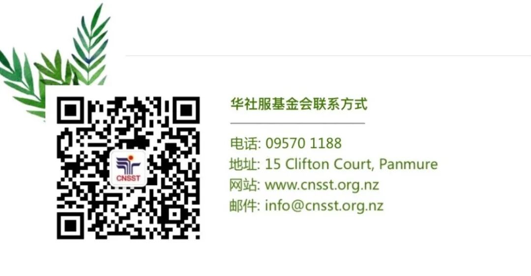 2) 紧急财政援助:通过www.cnsst.org.nz 或电子邮件ccs@cnsst.org.nz 进行申请。
