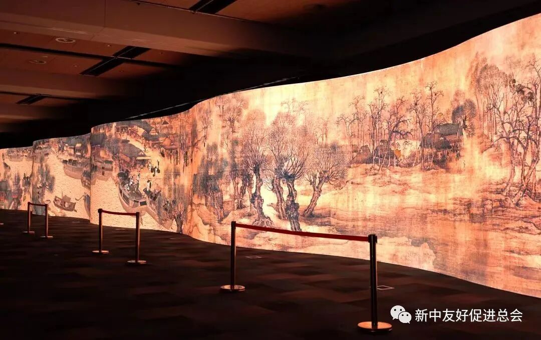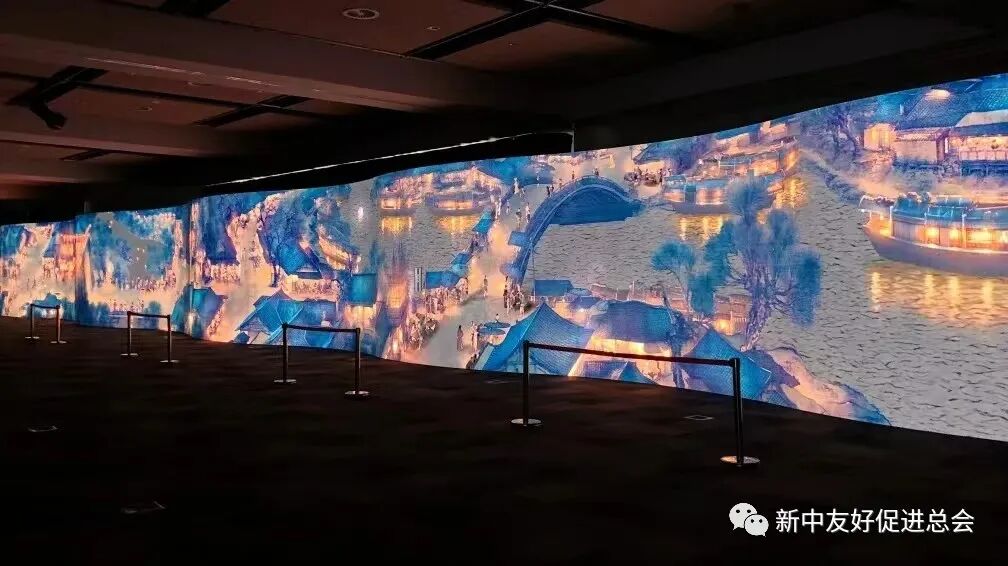 从万里之外运来的《流动的杰作-清明上河图》以多媒体形式拉开帷幕。为(中新建交50周年的)庆祝活动增添光彩,为新西兰人提供了解中国历史文化的机会,更好的促进新中友好奠定良好基础。