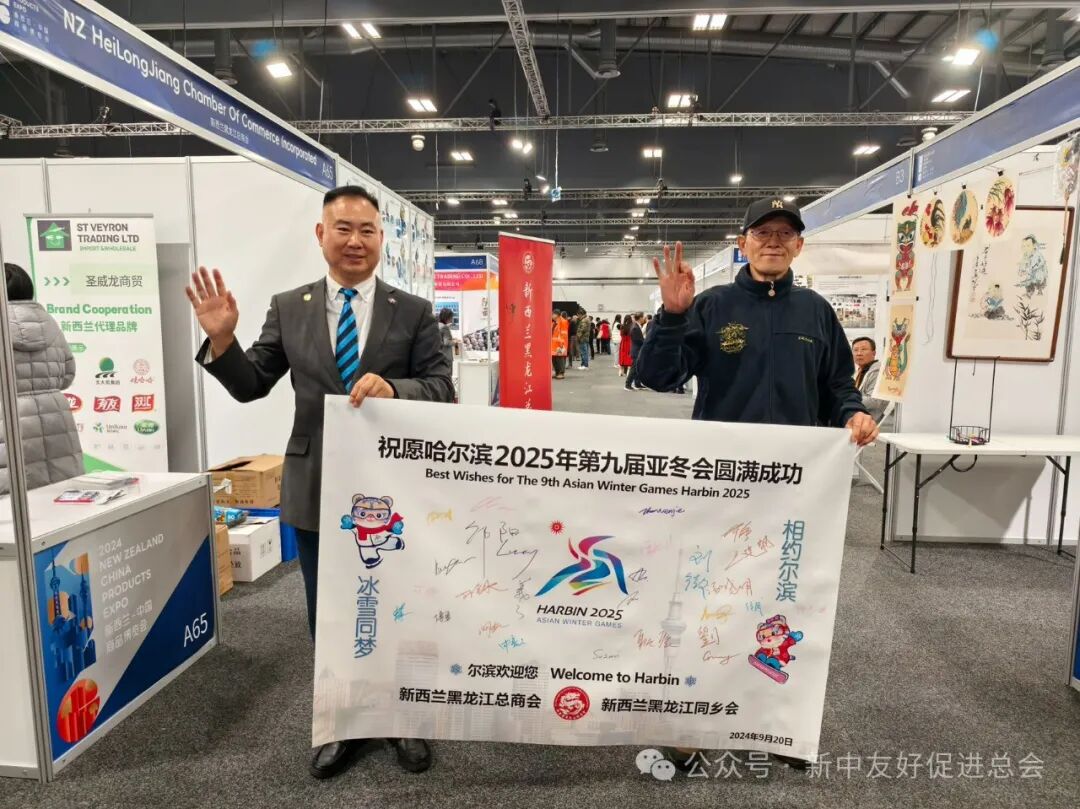 新西兰文化部部长、司法部长、媒体和通讯部部长、怀唐伊条约谈判部部长 Paul Goldsmith,奥克兰市长 Wayne Brown等分别表示新西兰政府对新中合作的支持。他们肯定了中国作为新西兰最大出口市场的重要地位,强调两国政府之间的深入交流与合作。以及未来中新两国将继续保持贸易伙伴关系,并在经济、文化等多个层面展开更为广泛的合作,进一步促进两国的长期友好发展。此外,受黑龙江省哈尔滨市侨联邀请,新西兰黑龙江总商会与新西兰黑龙江同乡会在博览会开幕式现场录制祝福视频,并组织签名条幅活动,祝愿“哈尔滨2025年第九届亚冬会”圆满成功。
