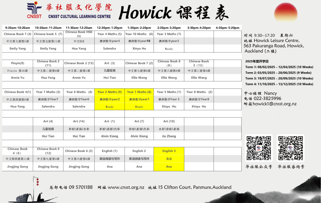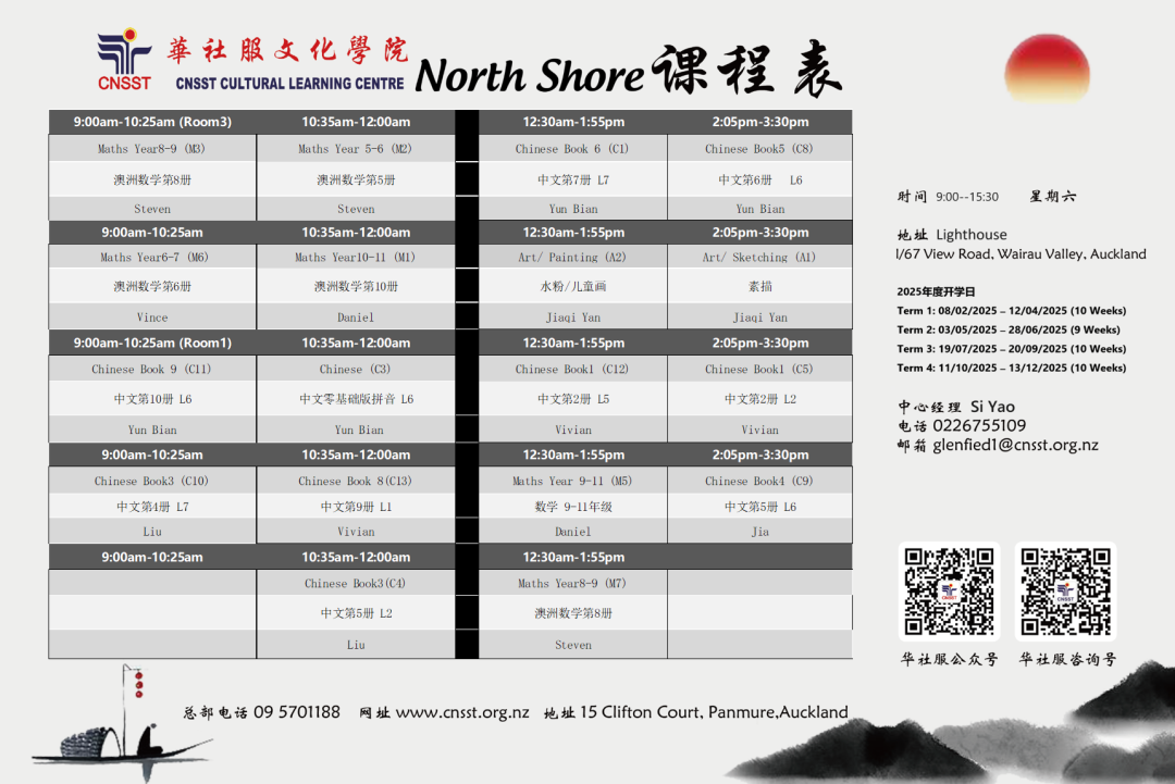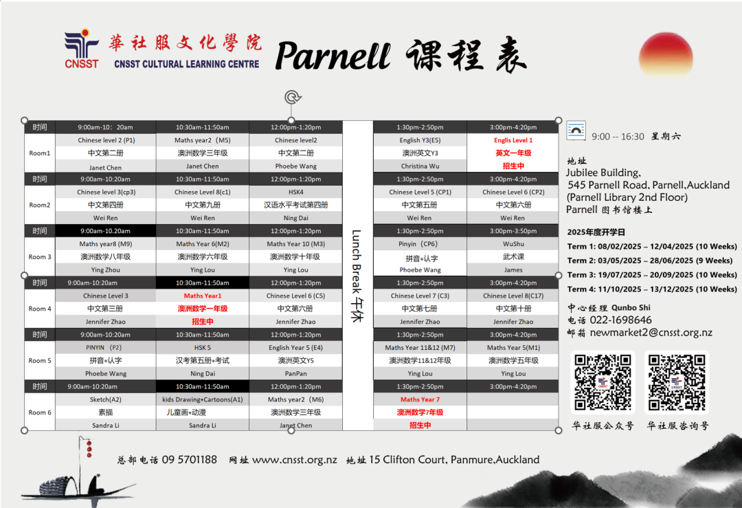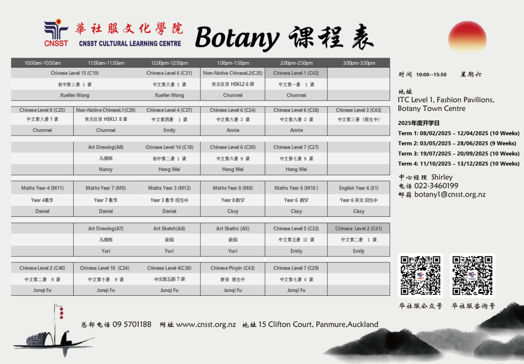 开学啦:新西兰华社服文化学院2025年第二学期热招中!专业师资,中文课长年优惠价,新生免费试听15分钟!欢迎到访!