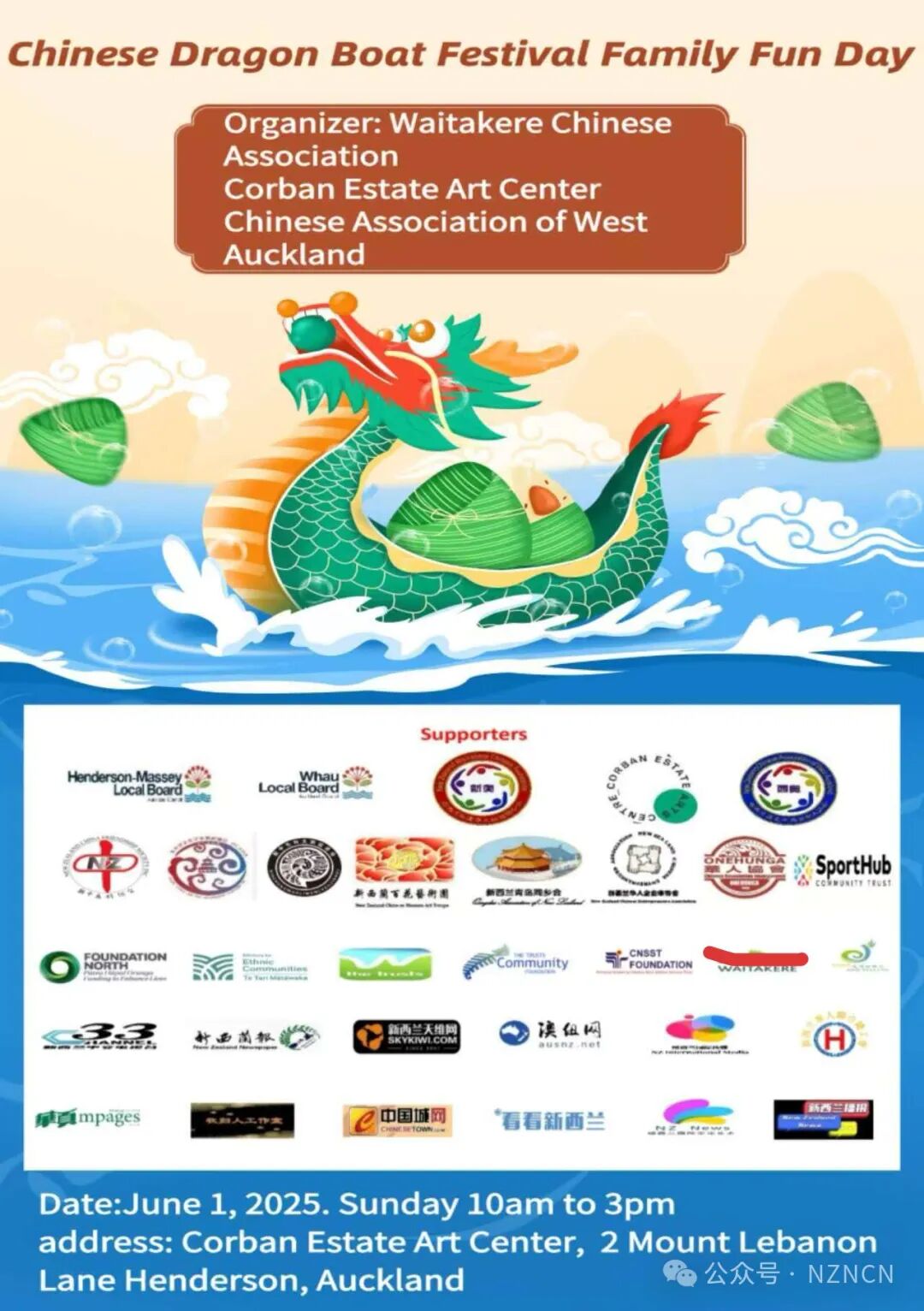 由新西兰新奥华人社团联合会、奥克兰Corban 艺术中心、奥克兰西区华人协会联合主办的年度文化盛典——“2025中华端午阖家同乐日”将于2025年6月1日(星期日)上午10点至下午3点,在Corban Estate Arts Centre(2 Mt Lebanon Lane, Henderson)隆重举行!