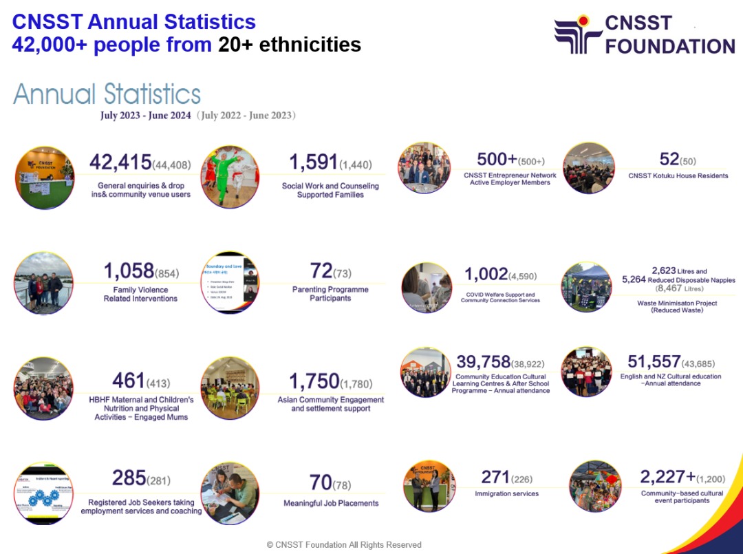 ingFang SC", system-ui, -apple-system, BlinkMacSystemFont, "Helvetica Neue", "Hiragino Sans GB", "Microsoft YaHei UI", "Microsoft YaHei", Arial, sans-serif; font-size: 17px; letter-spacing: 0.544px; text-align: left; box-sizing: border-box !important;">随后,全体一同观看了CNSST基金会的纪录片,回顾了华社服从创立至今走过的点点滴滴。27年来,基金会能够服务数万名移民家庭,离不开义工团队的鼎力支持与无私付出。感谢您们用爱心和行动支持华社服,在各个服务岗位上为社区做出贡献。在大家集体的努力下,我们社区服务在有限的资源下,每年为超过4.2万人次提供服务。义工们的付出,是社区温暖的源泉,更是我们不断前行的动力。ingFang SC", system-ui, -apple-system, BlinkMacSystemFont, "Helvetica Neue", "Hiragino Sans GB", "Microsoft YaHei UI", "Microsoft YaHei", Arial, sans-serif; font-size: 17px; letter-spacing: 0.544px; text-align: left; box-sizing: border-box !important;"> ingFang SC", system-ui, -apple-system, BlinkMacSystemFont, "Helvetica Neue", "Hiragino Sans GB", "Microsoft YaHei UI", "Microsoft YaHei", Arial, sans-serif; font-size: 17px; letter-spacing: 0.544px; text-align: center; box-sizing: border-box !important;"> ingFang SC", system-ui, -apple-system, BlinkMacSystemFont, "Helvetica Neue", "Hiragino Sans GB", "Microsoft YaHei UI", "Microsoft YaHei", Arial, sans-serif; font-size: 17px; letter-spacing: 0.544px; box-sizing: border-box !important;">华社服年服务统计: